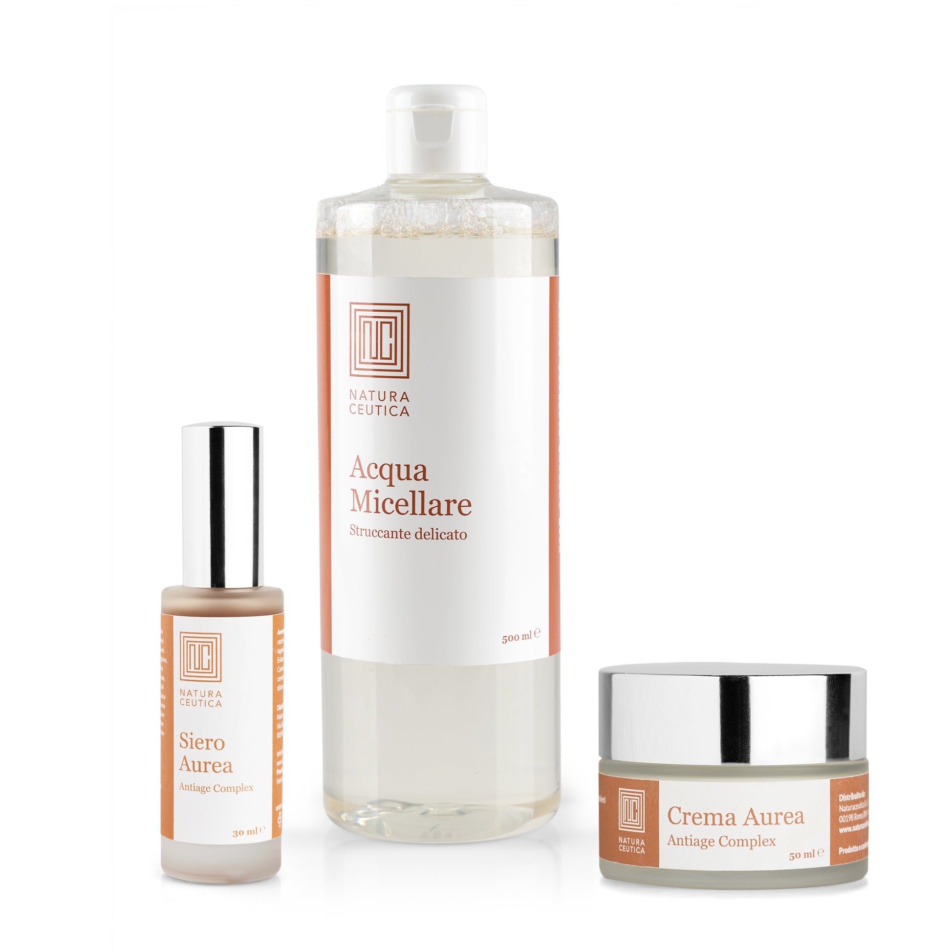 Naturaceutica - Bundle Linea Aurea Antiage - Crema 50 ml + Siero 30 ml + Acqua micellare 500 ml